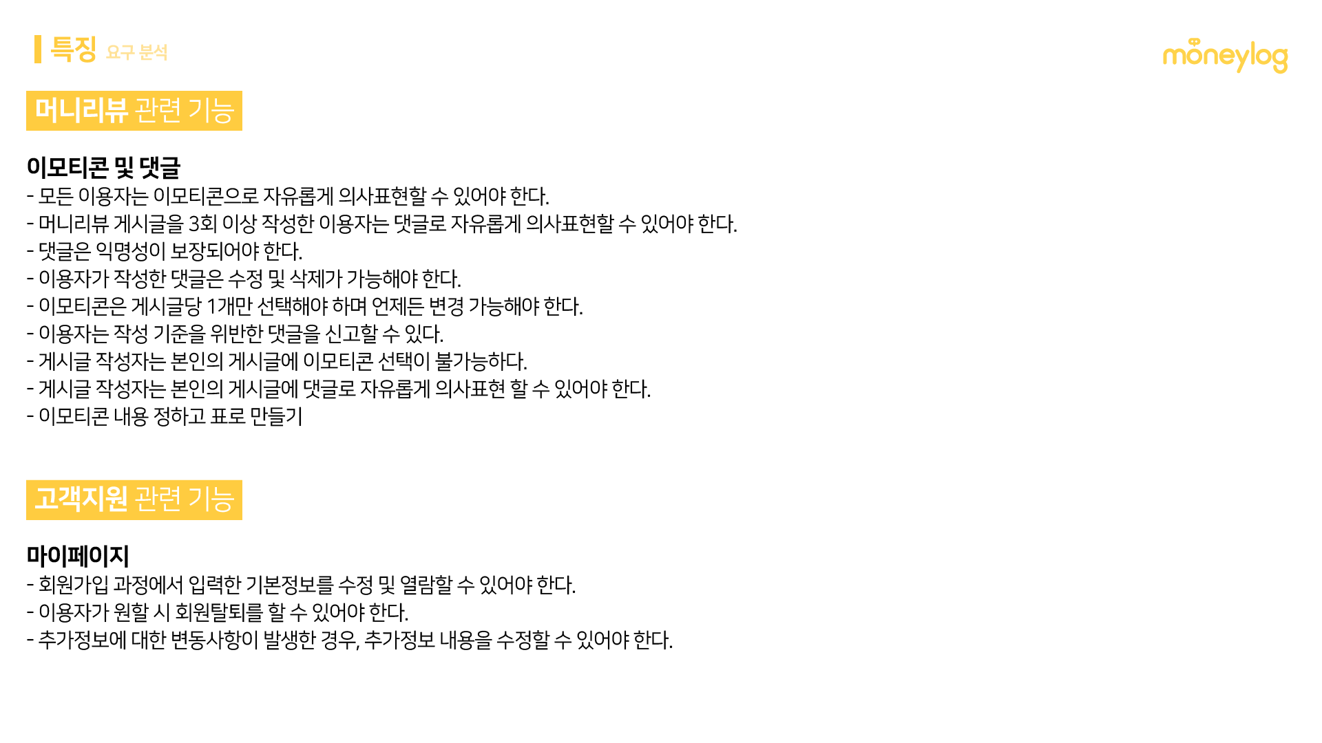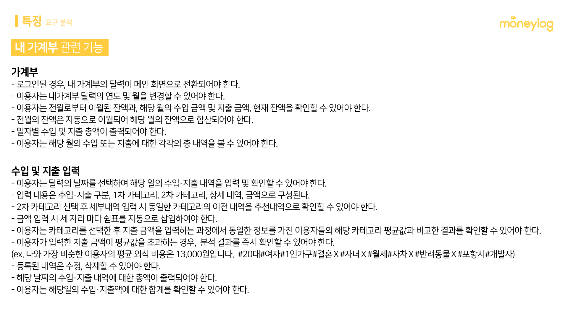 출처 : '머니로그' 요구분석서 일부