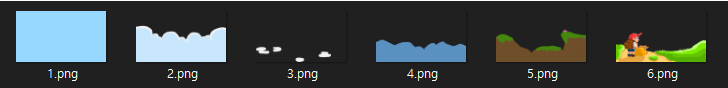 해당 그림은 6가지 레이어로 되어있고, 3개의 레이어만 마우스의 mousemove 이벤트를 받아 위치에 따른 transelate 작업이 이루어진다.