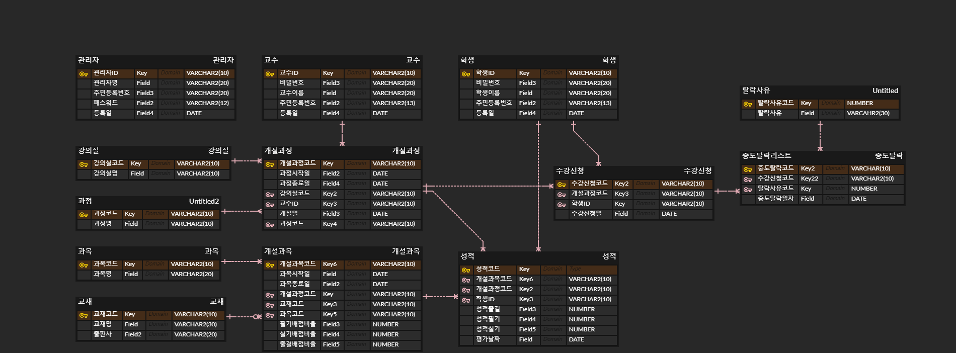 하지만 성적 처리 시스템을 ERD 설계부터 구현을 하면서